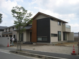 黒い外壁と長い格子が印象的な家屋がより美しく映えるようプラン致しました。